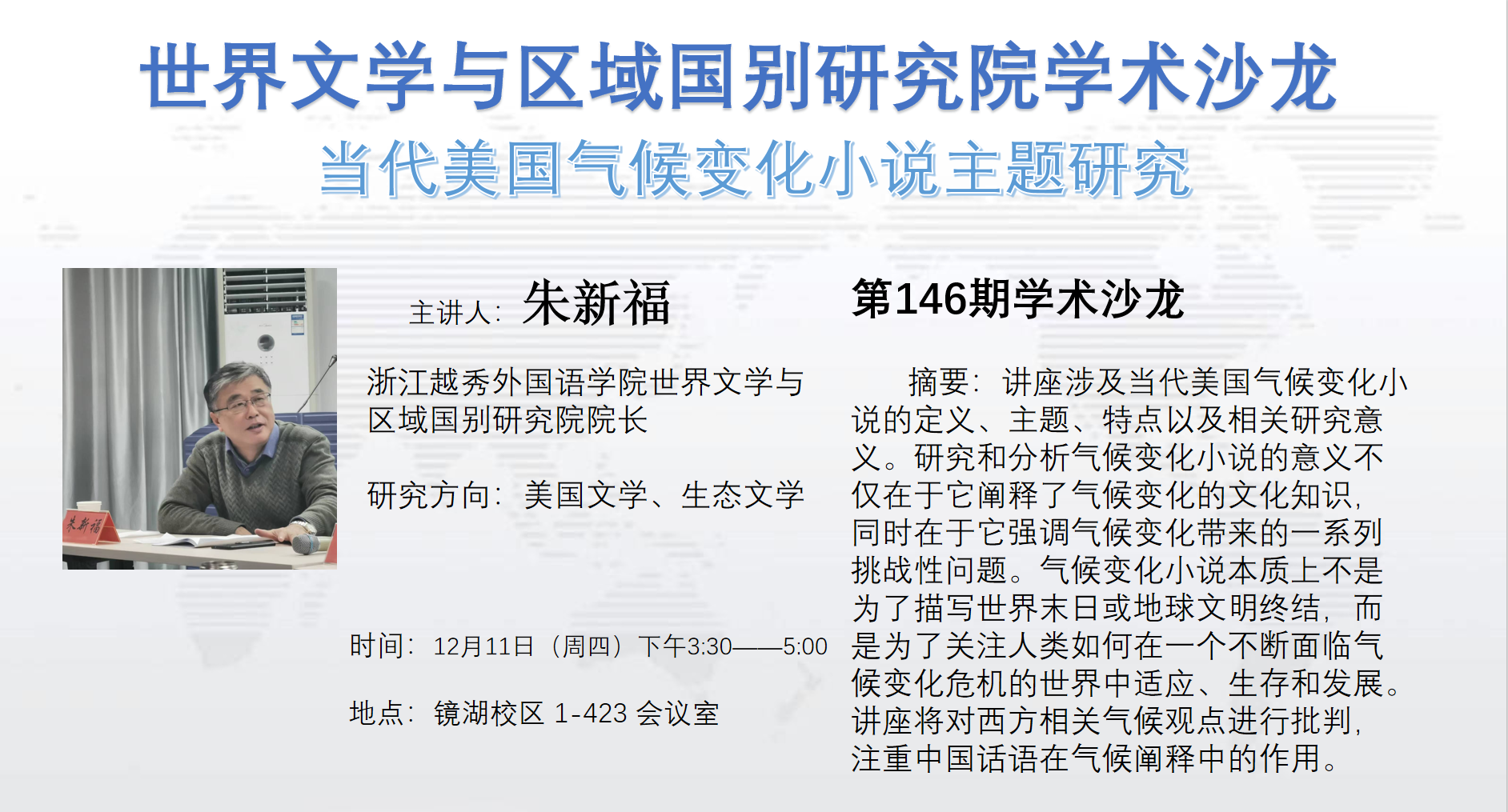 讲座题目:当代美国气候变化小说主题研究