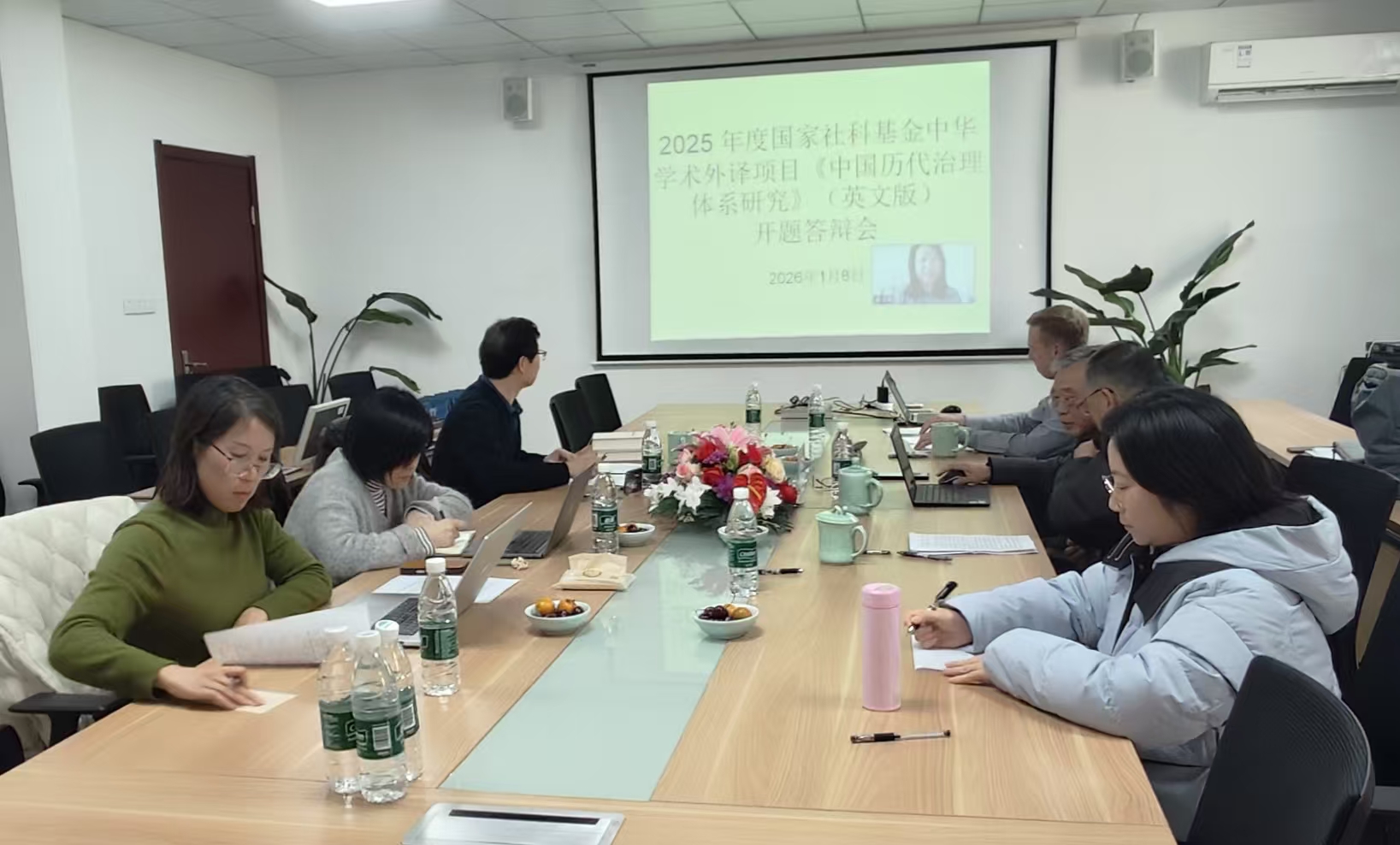 2026年1月8日下午,浙江越秀外国语学院李贵苍教授主持的2025年度国家社科基金中华学术外译项目《中国历代治理体系研究》(英文版)开题答辩会以线上线下相结合的方式,在稽山校区E228会议室如期举行。