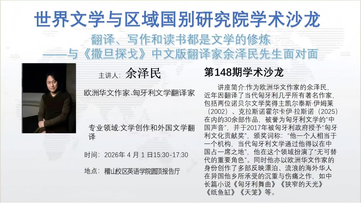 4月1日,著名翻译家、作家余泽民教授应邀莅临浙江越秀外国语学院,带来“翻译与阅读”专题讲座,围绕AI时代文学翻译的价值、翻译学习方法等核心问题展开分享,为外语专业师生提供了实用的实践指导与思想启发。